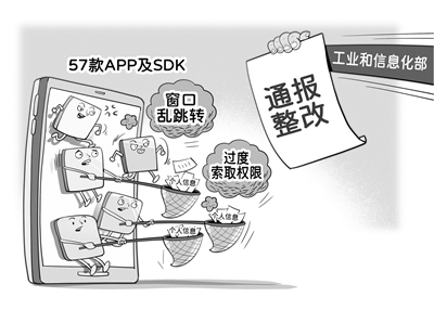 记者6月26日从工业和信息化部获悉,依据相关法律法规,工业和信息化部对APP、SDK(第三方软件开发工具包)违法违规收集使用个人信息等问题开展治理。近期,经组织第三方检测机构进行抽查,共发现57款APP及SDK存在侵害用户权益行为。据悉,上述APP及SDK应按有关规定进行整改,整改落实不到位的,工业和信息化部将依法依规组织开展相关处置工作。(6月26日新华网)□朱慧卿