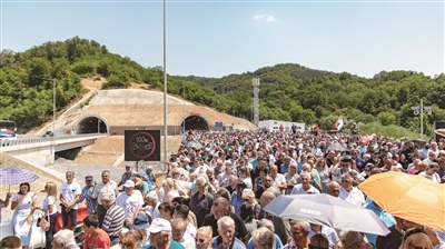 E763高速公路普雷利纳-波热加段位于塞尔维亚南部地形险峻山区,全长30.2公里,最高设计时速120公里,采用双向四车道标准建设。该路段是E763高速公路中施工难度最大的一段。图为在塞尔维亚西南部城市卢查尼,当地民众参加通车仪式。