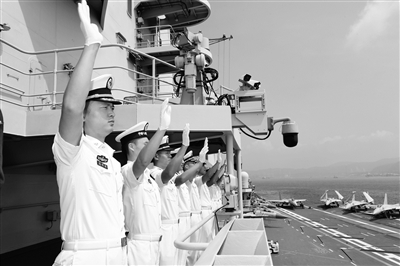 7月7日上午,海军山东舰航母编队圆满结束为期5天的访问,驶离香港。香港特别行政区政府在昂船洲军营码头举行欢送仪式。图为锚泊在维多利亚港西锚地的山东舰起锚返航。 新华社发