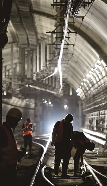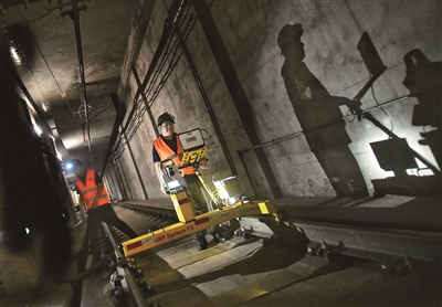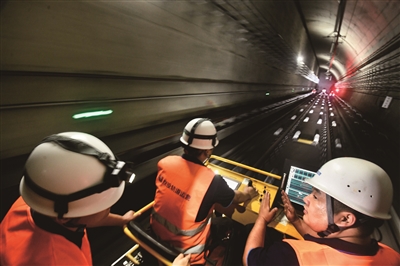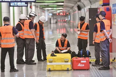这支由67名来自全国各地的青年组成的队伍,自成立之日起,便肩负起燕房线、大兴机场线、19号线三条骨干线路的轨道设备检查、质量数据分析、方案制定、设备状态评定等任务。每当地铁运营结束、列车归段、人们进入梦乡时,他们便踏着星光走进隧道,开展平均每月20次、每次约4小时的夜间检查监测工作。“19号线全长22公里,今天涉及的线路几何尺寸检查、道岔几何尺寸检查、双轨式钢轨超声波探伤等,都要在凌晨4点前完成。”轨道维修工长何云龙边向记者介绍边投入到工作中。