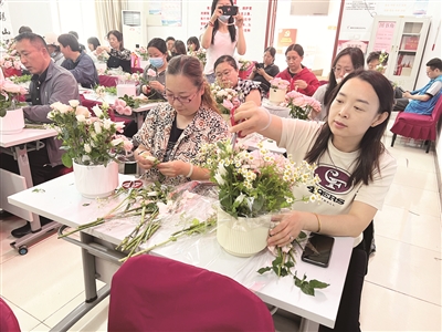 “以前我会买花给妈妈,这还是第一次亲手插花送给她,你们的活动太暖心了。”“亲手制作的礼物更有意义,我妈肯定会喜欢的。”插花活动结束时,几位女职工还在意犹未尽的讨论着。今年,宛平街道总工会特意将“惠工暖心 工会同行”系列活动的第三场安排在了母亲节前夕,此次鲜花制作活动为职工们提供了一个放松身心、发挥创意的平台,让他们在繁忙的工作之余,能够暂时放下压力,沉浸在花艺的世界中,感受生活的美好。通过亲手制作花束,职工们不仅学到了花艺知识和技能,还体验到了创作的乐趣和成就感,丰富了他们的精神文化生活,提升了职工的幸福感和归属感,为自己和家人送上一份别具一格的母亲节礼物。