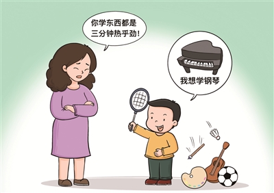 我家孩子好奇心旺盛,看到什么都想学,可每次都是三分钟热乎劲。看到同学弹钢琴他吵着要学,果没两周就放弃了;又嚷着学画画,没画几幅也没了兴致。我觉得不能任由他耍性子,要引导他把兴趣长期维系下去。