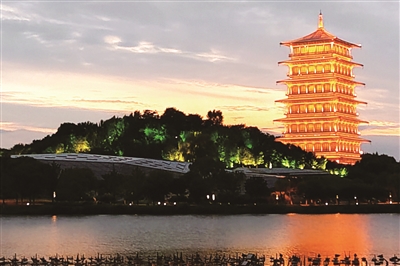 在西安宋城观看“西安千古情”演出后,已是傍晚时分。走出剧场,来到一处波光粼粼的水景,只见一座高大的楼阁矗立于水畔。西安的朋友告诉我,这楼阁之下流淌的便是历史上著名的灞河,也是西安的“母亲河”,且以灞桥更为知名。