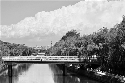 近日,北京迎来晴朗的好天气。在南护城河上,天空蔚蓝,白云仿若被画笔勾勒出各种形状,充满童话感。本报记者 曹立栋 摄影报道
