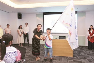 活动现场,绣有“幸福东航娃,蓝天筑梦行”字样的营旗被授予小营员代表。本期夏令营的课程设计新颖而有趣。语文素养板块中,传统经典诵读与团队协作游戏巧妙融合,将“责任”的种子播进童心;能力拓展环节把数学思维课变身“算数挑战赛”;创意美术与体能训练释放着蓬勃朝气;令人期待的科普课堂和童玩体验,为孩子们打开父母工作场景的神秘大门。