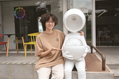 2022级学生黄梦涵为园区咖啡厅设计了文创雕塑“杯间浮生”,看着图纸变成实物,她非常有成就感。“我的设计是给店里顾客传递‘休闲’的情绪价值,也增加店的标识度,投资人觉得这个方案实用,兼具设计感,就通过了,还给我发了奖金。能够把所学知识付诸实践,是我大学四年的宝贵经历,无论对升学还是就业都很有帮助。”