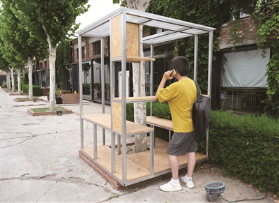 咖啡厅前摆放的艺术雕塑、手工制作的室外休闲装置、极具空间感与未来感的“镜面长廊”……走进丰台区纪家庙双创产业园,随处可见北京工业大学师生参与设计的痕迹,他们在这里把理论知识落地为实践成果,在扮靓城市微更新行动中收获多项技能。