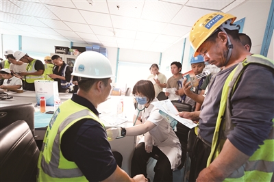 7月22日,2025年“情系工友·健康同行”北京市建筑工会系统农民工健康管理工作暨夏送清凉活动在中建八局故宫北院区项目工人生活区启动。北京市建筑工会、北京市外施工会联合北京康复医院共同组织本次活动,为参建故宫北院项目的200名农民工兄弟送来健康体检套餐,并在炎炎夏日为一线工人送去清凉物资。
