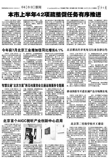 今年前7月北京工业增加值同比增长6.1%