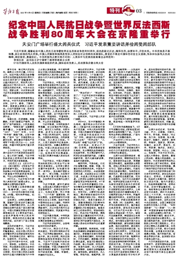 纪念中国人民抗日战争暨世界反法西斯 战争胜利80周年大会在京隆重举行