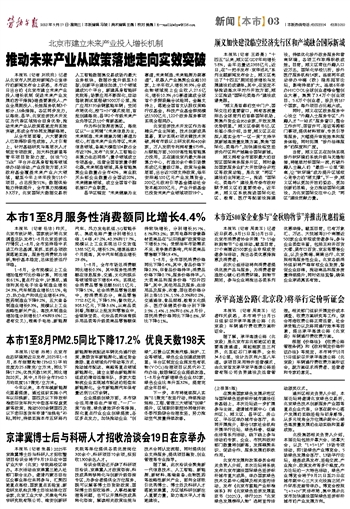 本市1至8月PM2.5同比下降17.2% 优良天数198天