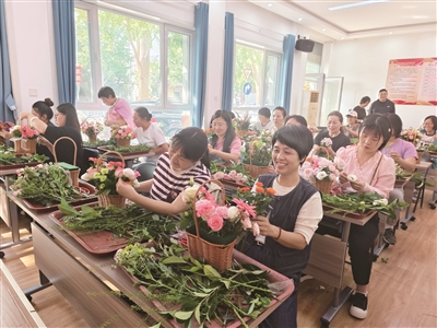国庆中秋来临之际,怀柔区泉河街道总工会举办“欢度国庆 花韵中秋”主题插花活动。在花艺师的指导下,职工们用手中的玫瑰、小雏菊、太阳花等鲜花,设计出一件件融合家国情怀的插花作品,既承载着职工对传统文化的传承,更寄托着职工对美好生活的向往。