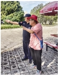 “您好,请问艺术剧场怎么走?打铁花水上舞台在哪里?”……国庆中秋假期,每天都会有游客不停地询问路线,北京花乡保安公司驻世界公园安保队队长于刚总会尽心为游客指出最近的路线。
