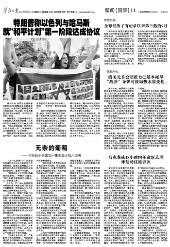 特朗普称以色列与哈马斯 就“和平计划”第一阶段达成协议
