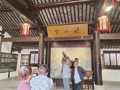 晴山堂的东侧,就是徐霞客当年数次远游的河埠头。晴山堂后院,安放着徐霞客的明式移葬墓。在故居和晴山堂之间,建起了以徐霞客游记碑廊为主体的仰圣园。