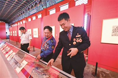本次系列展分为三部分,包括太庙寝殿展出的“京津冀职工书画作品展”,太庙祧庙展出的“北京市第十五届职工文化艺术节书画摄影微视频作品展”,以及太庙享殿东西配殿展出的“‘红墙热土翰墨铸情’师生作品展”。三个展览共展出近500幅(件)作品,呈现各行各业职工投身高质量发展实践的昂扬姿态。