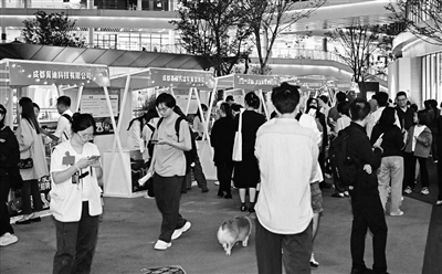 10月11日晚,国内首个骑行主题商业公共空间——四川省成都此地CyPARK内,2025年“才聚高新”夜市星空招聘会正在进行,吸引不少年轻人前来求职。(10月14日《四川工人日报》)