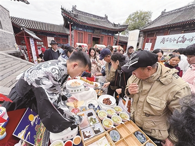 昨天,位于烟袋斜街的古建广福观举行一场别开生面的非遗市集。此次市集由非遗互动、老字号美食、主题文创、便民服务等组成。其中人气最高的要数美食试吃和游戏互动摊位,老字号庆云楼和富华斋饽饽铺摊位前,等待试吃的市民排起长队。同时,非遗文化体验区内多位传承人展示沙燕风筝、兔爷彩绘、老北京翻花等非遗技艺,引得市民纷纷体验。