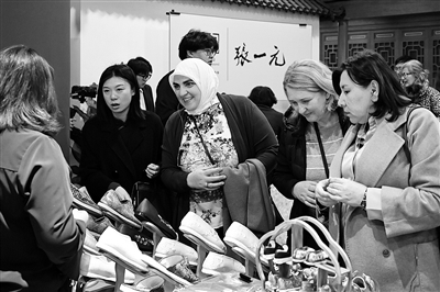 “金秋雅韵”大使夫人文化体验活动日前在内联升、瑞蚨祥两大北京老字号举行。28个国家的驻华大使夫人齐聚“中华老字号”,近距离感受京味文化与东方美学,沉浸式体验北京老字号传统技艺。