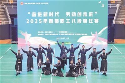 10月18日,由北京市总工会、北京市体育局主办的“奋进新时代 劳动创未来”2025年首都职工八段锦比赛在北京工人体育馆举行。北京市总工会、北京市体育局相关领导出席活动。共有来自全市各区、各产业工会500余名职工运动员参加比赛。最终,海淀区总工会代表队、北京经济技术开发区总工会代表队获得赛事一等奖;石景山区总工会代表队等6支队伍获得二等奖;密云区总工会代表队等9支队伍获得三等奖。