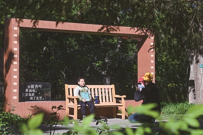近日,北京天朗气清。记者在地坛公园银杏大道南端西侧看到,银杏叶与电影画框相映成趣。新设置的秋日长椅装置吸引市民游客在此“框”住美景,留下美好瞬间。本报记者 曹立栋 摄影报道