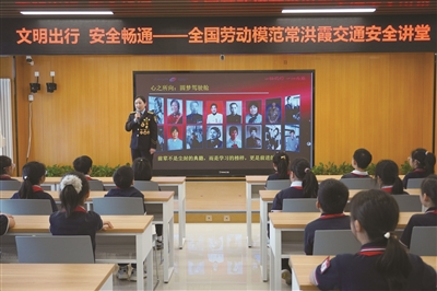 近日,北京公交集团客四分公司工会邀请全国劳动模范常洪霞走进门头沟区育园小学,为学生带来了一堂生动的“安全第一课”。常洪霞结合学生日常出行场景,围绕“如何安全候车”“乘车注意事项”“下车后如何过马路”等关键环节,深入浅出地分析潜在安全隐患,并讲述自己多年坚守公交岗位的温暖经历,让劳模精神融入校园。