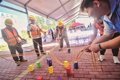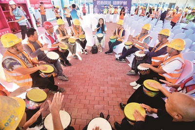 “工会送来的健康科普体验太好了!”来自河南的木工郭栓说。在趣味心理拓展区,开展了珠行千里、音乐鼓圈、合力建塔、心理沙盘、心理咨询5项服务。在专家们的引导下,职工们在轻松愉快的互动氛围中舒缓工作压力,增进团队凝聚力。