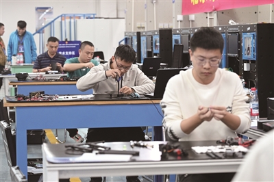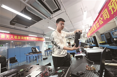 实操赛场上,选手们全神贯注,他们需要在规定时间内完成无人机整机及载荷系统的装配,并完成无人机系统参数调试与测试。飞行作业中,选手们需要操控无人机进行起降、悬停、自旋以及装载与抛投等动作,紧张的赛程对选手的脑力和体力都是一次不小的考验。记者在现场看到,选手们目光专注,一边操控无人机完成指定任务,一边灵活躲避障碍……经过激烈角逐,比赛最终评选出前三名优胜者。