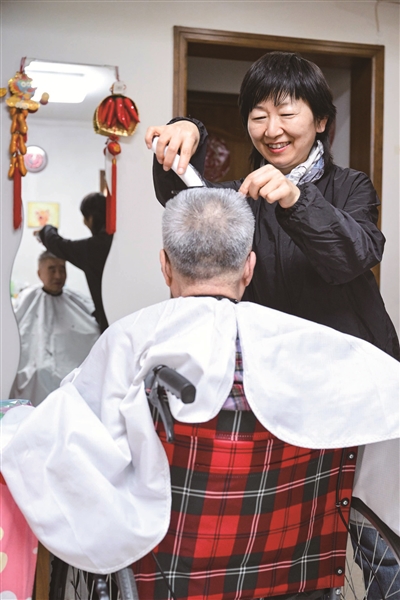 “啥时候过来理发呀,头发又长了。”62岁的贾阿姨给志愿者打电话。她患有脑梗,也有肢体残疾,平时都是瘫痪在床。“理发这样平常人看起来特别微不足道的小事,对她来说,就是很大的难事。”南苑街道民生保障办公室工作人员朱维玉说。