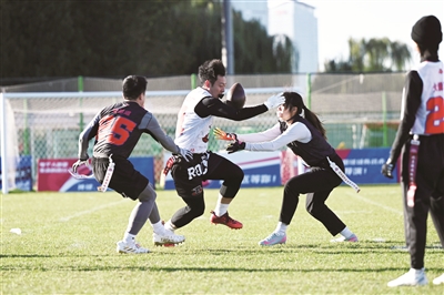 10月25日至26日,第三届北京腰旗橄榄球公开赛在通州运河奥体中心开赛。公开赛竞赛项目为5人制腰旗橄榄球,设男子组、混合组两个组别,共有27支队伍近400名运动员参赛。随着腰旗橄榄球被列为2028年洛杉矶奥运会的比赛项目,腰旗橄榄球项目持续升温,逐渐从“潮运动”向专业化发展。