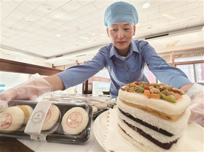 今天是重阳节。记者昨天在护国寺小吃总店看到,前来预订购买寿桃、重阳糕的顾客络绎不绝。重阳节“招牌”寿桃、寿面、寿饼的销量持续上升,有的市民还将这些寿礼“打包”成礼盒取“百年寿面、千年寿桃”美好寓意。此外,砂锅居、曲园酒楼等也通过专属套餐、到店赠礼、适老服务、特色寿宴等多重举措,为老年顾客及家庭打造温馨、贴心的节日用餐体验。本报记者 孙妍 摄影报道