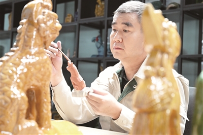 为了让琉璃文化走入现代生活,他大胆进行产品创新,从传统造型中汲取灵感,开发出微缩老北京门墩、太和殿走兽、琉璃佛像等工艺品,曾多次获得旅游商品设计大赛奖项。
