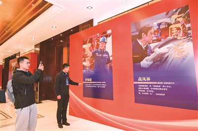 昨天,首届全国职工“文化创意、岗位创新、管理创效”大赛决赛在京启幕,来自全国28 个行业的572项参赛成果的创新团队带着凝聚职工智慧的创新作品参加决赛。大赛期间,10余位大国工匠、20余位全国劳动模范将深度参与赛事,或携成果参赛,或分享创新经验,为大赛注入了深厚的“高技能基因”。图为参赛选手正观看大国工匠展板。(相关新闻详见第6版)