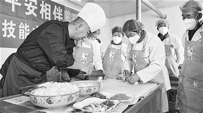 古城乡头号村村民在培训老师指导下,在“家门口”接受免费技能培训,可以说是精准破解了地方劳务市场结构性矛盾。一方面,一些招聘企业难以招到家政服务、养老护理、烹调等工作岗位的适配人员;另一方面,一些农村转移劳动力因缺乏这些岗位的基本技能而难以找到工作。现在好了,有了“家门口”的免费培训,可较好缓解这一劳务市场“两难”现象。