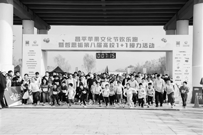 昌平苹果文化节欢乐跑暨哲思狐第八届高校1+1接力活动近日在白浮泉公园启幕。活动新增面向全体市民开放的“欢乐跑”,让参与者在奔跑中饱览昌平秋日层林尽染的美景,品味果香弥漫的独特体验。此次活动串联起白浮泉历史文脉、昌平苹果品牌价值及区域生态休闲优势,打造“体育+农业+商业+文旅”融合新场景。