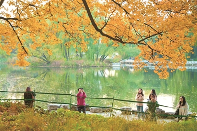 连日来,京城阳光明媚,北京紫竹院公园色彩斑斓的景致吸引众多市民前来游览拍照。园内湖水澄澈,银杏、垂柳、白蜡、红枫换上新装,将天地渲染得绚烂夺目。不少市民手持相机穿梭其间,定格湖面倒影、林间光影等绝美景色,人与自然相映成趣。本报记者 曹立栋 摄影报道