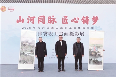 京津冀三地地域相连、文脉相融、民心相通。日前,由北京市大兴区总工会、天津市武清区总工会、河北省廊坊市总工会、北京市大兴区文化和旅游局联合主办的“山河同脉 匠心铸梦”——2025年京津冀职工书画摄影展在团河行宫遗址公园正式拉开帷幕。通过笔墨与镜头,职工们以艺术为媒介,共同书写京津冀协同发展的崭新篇章。