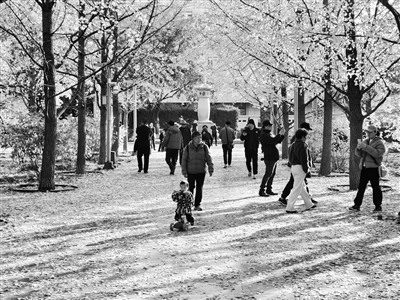 昨天,法源寺前广场的银杏林成了市民秋天打卡地之一,慕名而来的游客络绎不绝。人们或漫步其间,或驻足于树下取景,在光影交错间感受着秋天的美好。为了留住这份诗意,相关部门实行“落叶缓扫”,让厚厚的金黄叶片铺满步道,让秋日的专属烂漫延续。