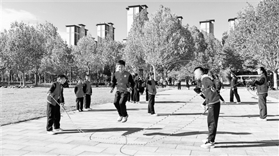 以蓝天为幕、树林为背景,学生们在公园广场上“撒欢”跳长绳、踢足球、练武术……近日,丰台区中小学乐野自然体育课试点项目展示交流活动在北京园博园举办,通过“徒步实践+经验分享+课程展示”形式,全面展现乐野自然体育课的教学成果。