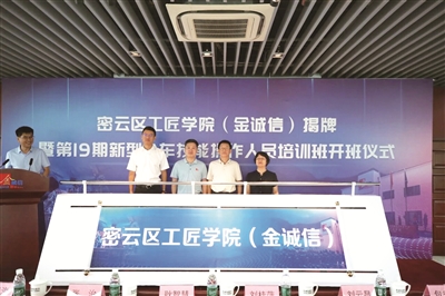 为持续深化产业工人队伍建设改革,充分发挥劳模和工匠的示范引领作用,进一步加大职工教育培训力度,今年7月,密云区工匠学院(金诚信学院)揭牌成立。这标志着继首都经济贸易大学密云分校工匠学院之后,密云区再添一所专业的职工培训平台,为培养和造就更多高素质产业人才注入了强大动力,助力产业工人队伍在高质量发展的赛道上加速奔跑。