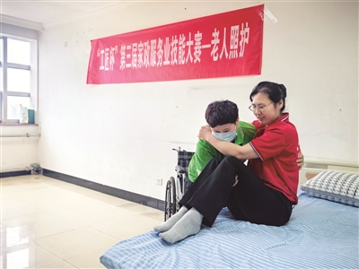 在母婴护理实操现场,选手们围绕婴幼儿疾病预防、起居照顾等内容,以娴熟的技巧和温柔的动作对新生儿进行专业呵护。在家务服务比赛中,色香味俱全的厨艺展示、高效有序的收纳整理,尽显选手们家政服务的细致与周到。在养老照护实操区,选手们熟练地为卧床老人更换床上用品,精心协助老人外出,用专业与耐心诠释对老年人的关怀。