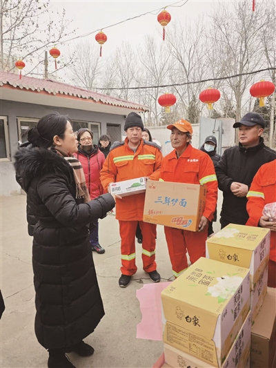 为了慰问在寒冷天气依旧坚守岗位的一线职工,近日,丰台区园林绿化局工会带着“温暖包”,开展了“送温暖 暖人心”慰问活动。丰台区园林绿化局局长孔媛媛、工会主席范爽带队,先后来到丰台区园林绿化中心、公园管理中心、林业工作站,将方便面、牛奶、水果、干果等物资送到基层职工手中,让一线职工倍感温暖、深受鼓舞。