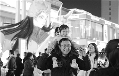 近日,河北省石家庄市新华区第三届湾里庙灯会在湾里庙步行街举行亮灯仪式,人们来这里赏灯游玩、购物休闲。近年来,石家庄市着力培育夜经济新场景新业态,打造集美食、娱乐、购物等于一体的夜经济消费圈,丰富市民夜生活。图为游客在湾里庙步行街彩灯前拍照。新华社发