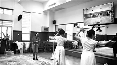 “你们看看回放,是不是身体有点板?应该加上点小动作,再灵动一些……”中国戏曲学院京昆系副教授张艳红在排练厅内指导两个学生学习京剧《卖水》选段。学生的身段和唱腔被人工智能设备记录下来,一个片段结束,张艳红操作鼠标在大屏幕上实时回放教学录像,指导学生注意细节,调整不到位的动作。