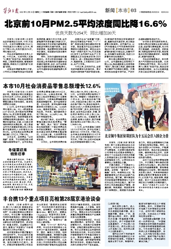 北京前10月PM2.5平均浓度同比降16.6%