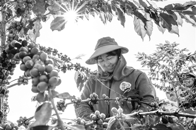 近期,云南省保山市迎来咖啡收获季,当地咖农趁晴好天气采摘、加工咖啡果,咖啡园中一派繁忙景象。保山市西靠高黎贡山、东临怒江,其独特的干热河谷气候提供了得天独厚的咖啡种植条件。近年来,依托云南省农业科学院热带亚热带经济作物研究所,保山选育推广出铁皮卡、波邦、瑰夏等精品品种,实现了咖啡品种多样化发展。图为咖农在云南省保山市隆阳区烫习村一处咖啡园采摘咖啡果。新华社发