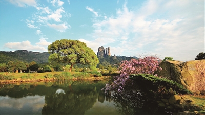 江郎山名气没有西湖大,但它又是怎样能够早于西湖、成为浙江省首个被联合国教科文组织批准列入世界遗产名录的景区的呢?这要得益于江郎山为我国典型的丹霞地貌景观。江郎山并不高,海拔不过824米,但景观极好。江郎山拥有“中国丹霞第一奇峰”,拥有被地质学家勘定为“全国之最的一线天”,还有惊险陡峻、无法触及的郎峰天游等丹霞地貌景观以及其他自然奇观。江郎山最显著的就是其典型的丹霞地貌景观,在经过数亿年前的地壳运动,大自然打造出了江郎山独一无二的丹霞地貌景观。其中最为著名的就是“三爿石”,三座石峰自北向南呈“川”字形排列,是典型的丹霞地貌,被誉为“中国丹霞第一峰”。“三爿石”分别称郎峰、亚峰、灵峰,其中石峰高369米,状如天柱,直入云间。从远处看三座石峰是有细小缝隙的,几乎是人无法通过的,但是靠近之后会发现三峰之间有大弄、小弄可出入。其中最小弄内的岩壁如刀削般光滑,高312米,长298米,宽度仅仅只有3米多,素有“全国之最的一线天”之美誉。