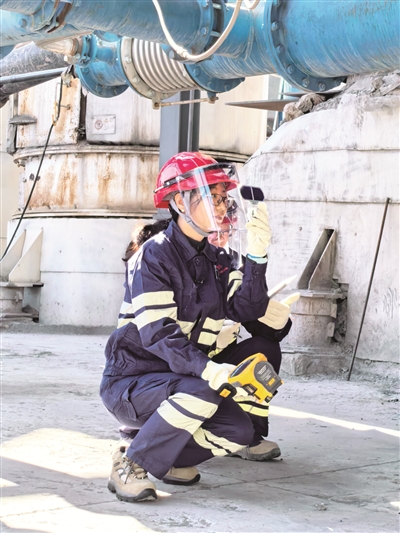 面对水泥窑炉产生氮氧化物本底浓度高,末端治理难度大、氨水消耗量高的行业“卡脖子”难题,郝利炜直接“揭榜挂帅”,组建团队,日夜攻坚。她与团队跑遍几十条示范线考察,和顶尖机构反复研讨,光是配方就调了上百次,模拟推演做了上万次!