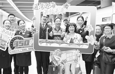 12月22日,广州至湛江高铁开通运营,广州白云站至湛江北站最快1小时32分可达。据了解,广湛高铁设计时速350公里、正线全长约401公里。通车运营后,阳江、茂名、湛江三市结束不通时速350公里高铁的历史,标志着广东向着“市市通350高铁”目标迈出坚实一步。图为搭乘从广州白云站开往湛江北站首发列车的旅客与工作人员在广州白云站合影。新华社发