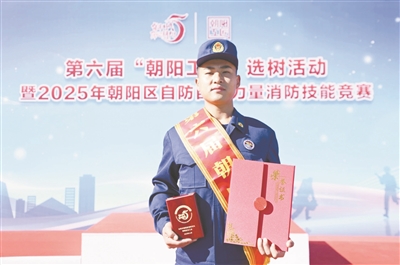 5年间,白一贵参加各类比赛40余次,多次摘金夺银,每一次突破都凝聚着数不清的汗水。11月2日,第六届“朝阳工匠”选树活动暨朝阳区自防自救力量消防技能竞赛现场,他再次向巅峰发起冲击。30公斤的肩梯压在肩头,发令枪响后,他如离弦之箭冲向终点。最终,他凭借8秒完成60米肩梯跑、12秒4跑完全程的成绩,从众多竞争者中脱颖而出,斩获“朝阳工匠”称号。